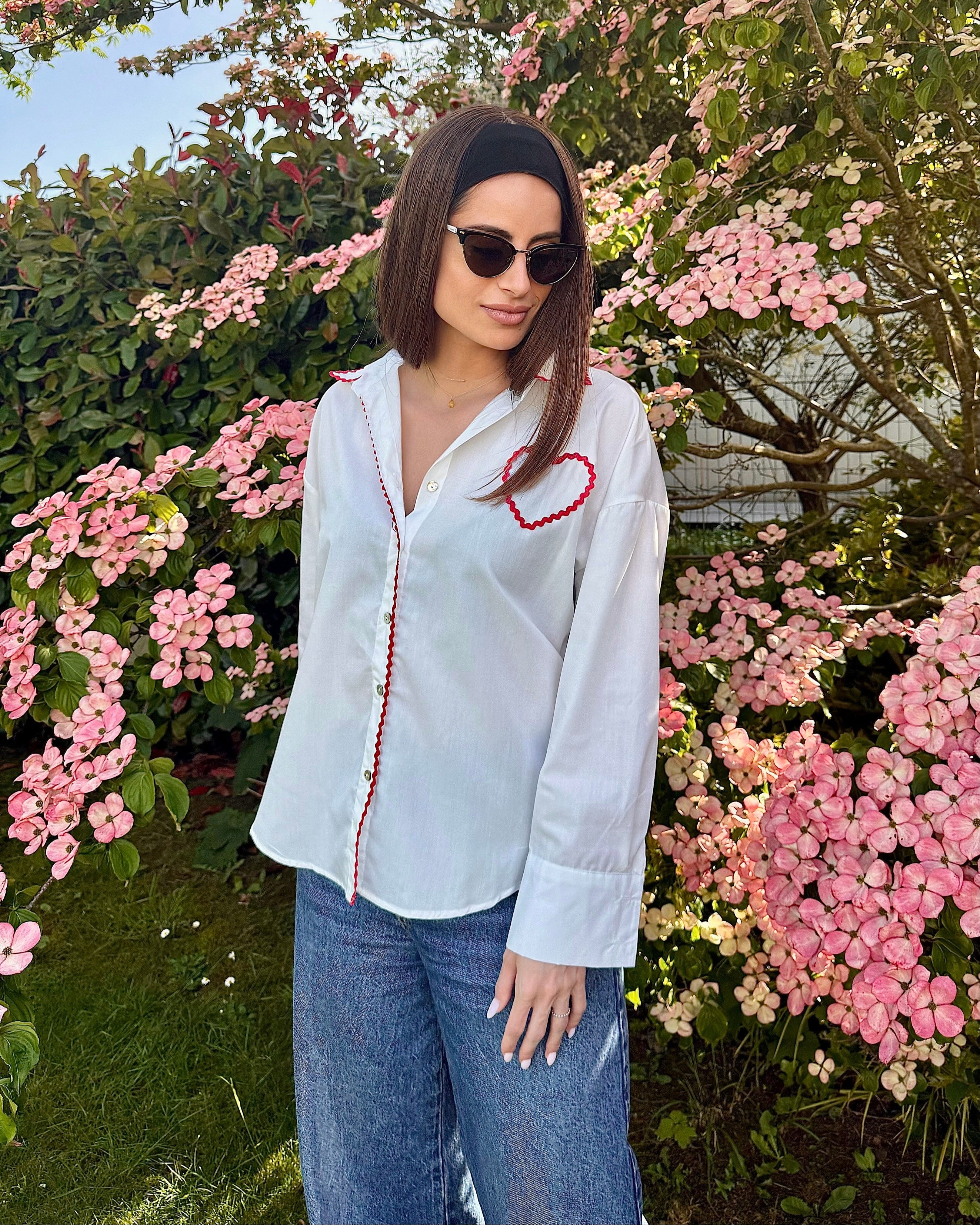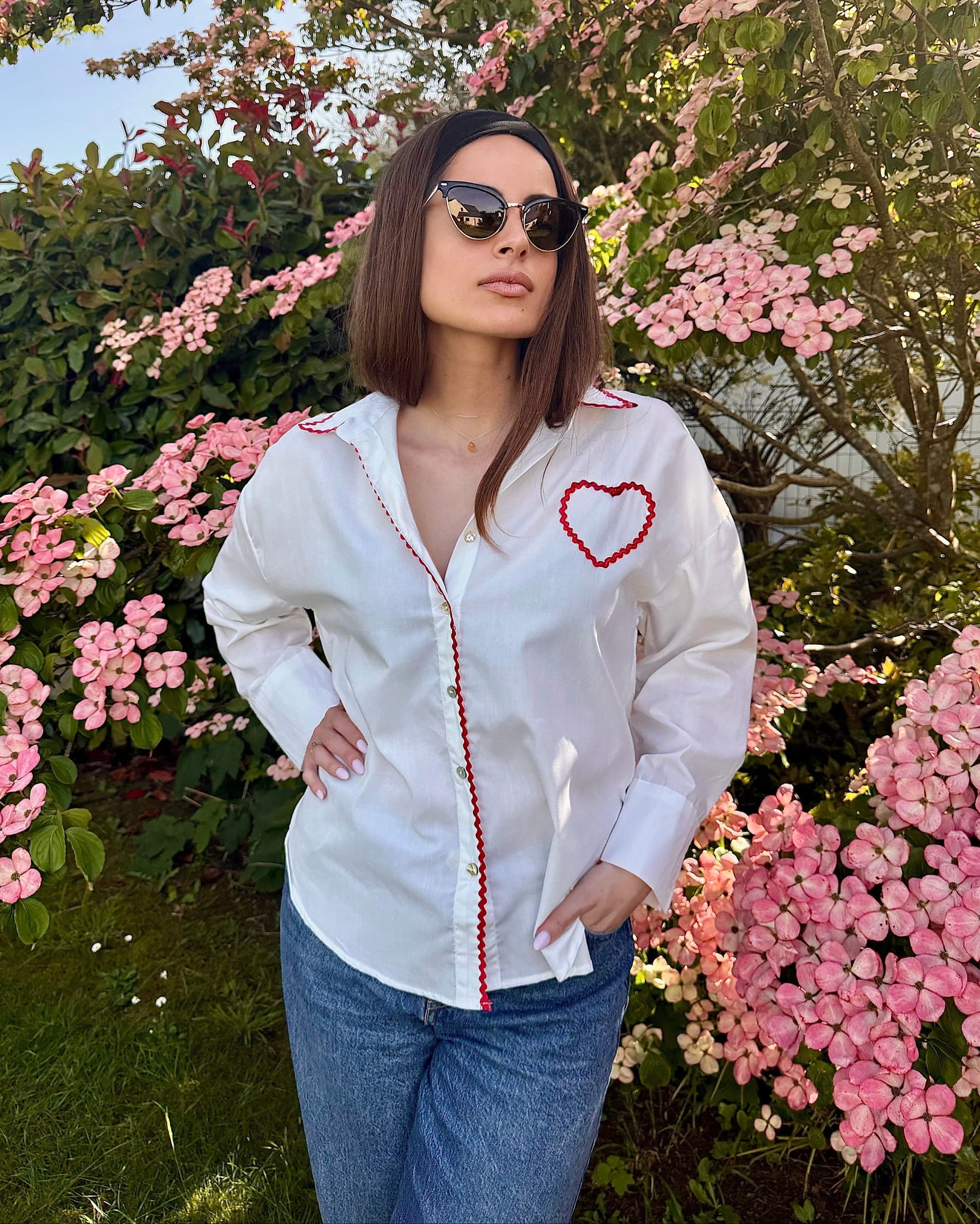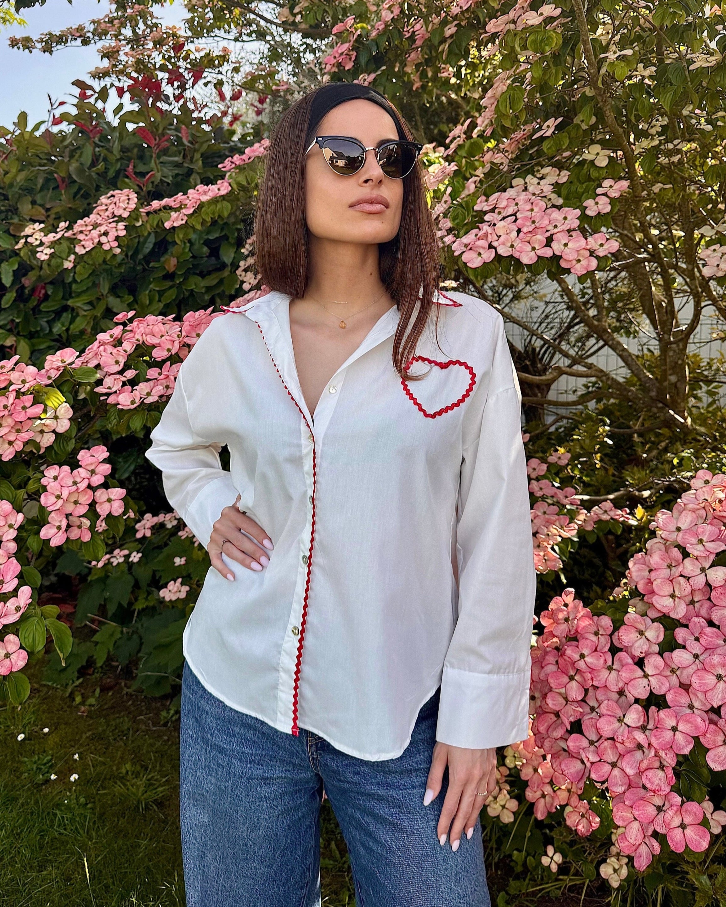 Coup de cœur assuré pour cette chemise blanche twistée par ses finitions rouges en croquet et son cœur brodé sur la poitrine. Un modèle à la fois chic et espiègle.